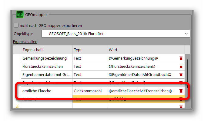 Die Informationen lassen sich anschließend an die CAD, hier GEOmapper weitergeben (Einstellung in der Kreuztabelle) und verwerten.