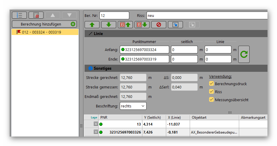 | Objektart | Abmarkung / Vermarkung | Bemerkung zur Abmarkung | relative Höhe |