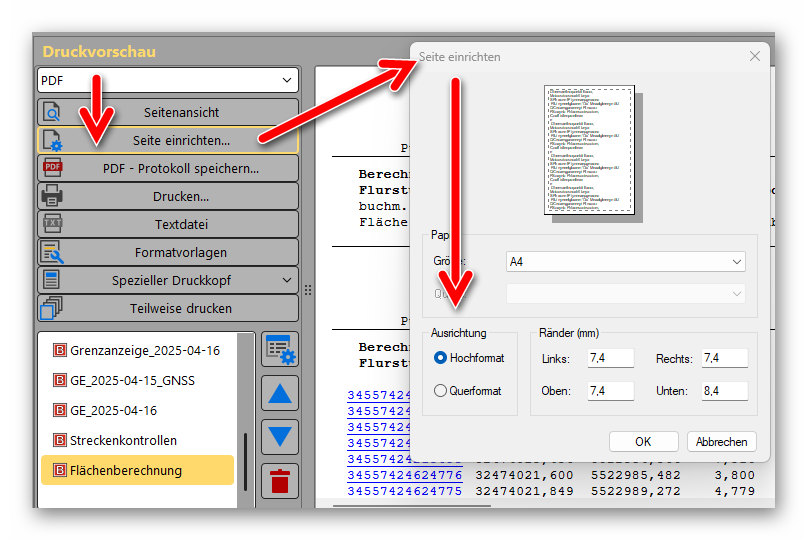 GEO8 verwendet an dieser Stelle die Einstellungen Ihres Standarddruckers ihres Betriebssystems. Bitte prüfen Sie ob dort das Hochformat als Standard eingestellt wurde.