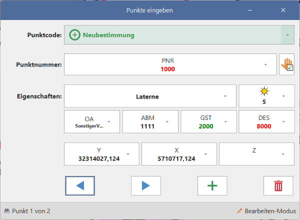 Mit der neuen Berechnungsart "Punkte eingeben" ist analog zu GEO8 eine manuelle Eingabe von Neupunkten möglich:
